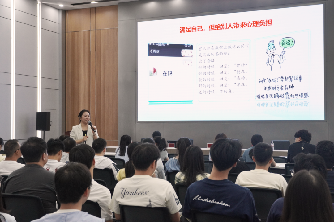 陳瑛老師的講座圍繞自我激勵、協同溝通、對外溝通、對上溝通四大維度展開。首先,陳瑛老師分別以工作場景和生活場景中的溝通對話與大家進行互動,帶領大家對“高情商”進行思考與剖析,由此展開當天的主題。隨后,結合豐富的實戰案例與互動環節,陳瑛老師層層遞進,深入淺出地講解了如何在日常工作中實現高效溝通,激發自我驅動力,提升團隊協同效能。在長達2.5小時的課程中,陳瑛老師還結合商務禮儀的要點,根據不同場景對溝通實操進行了解析。并強調,良好的溝通不僅是技巧,更是一種心態與習慣的培養,也是實現個人與團隊實現共同成長的重要途徑。
