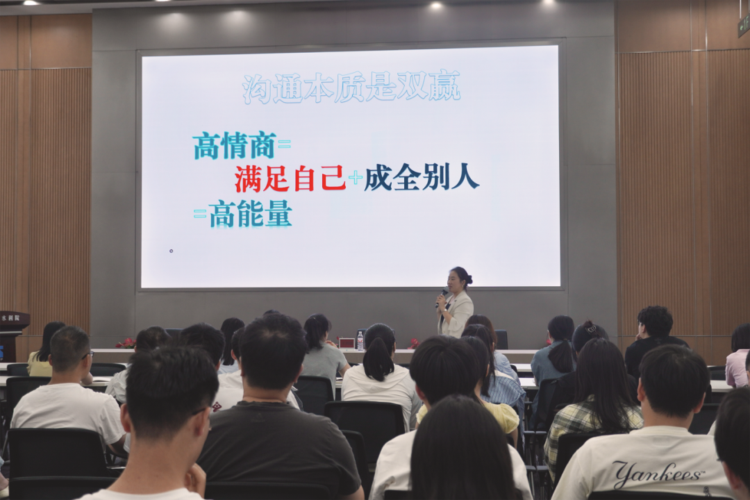為提升員工的溝通能力與團隊協作效率,2025年9月18日下午,我院工會在院一樓報告廳舉辦了一場主題為“從自我激勵到高效協同的溝通法則”專題講座。本次講座聚焦職場溝通,特邀禮儀專家、教育學碩士陳瑛擔任主講。我院各部門近70名員工積極參與,現場氣氛熱烈。