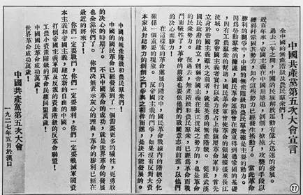 1927年4月27日至5月9日,中國共產黨第五次全國代表大會在武漢召開。出席大會的代表有:陳獨秀、蔡和森、瞿秋白、毛澤東、任弼時、劉少奇、鄧中夏、張國燾、張太雷、李立三、李維漢、陳延年、彭湃、方志敏、惲代英、羅亦農、項英、董必武、陳潭秋、蘇兆征、向警予、蔡暢、向忠發、羅章龍、賀昌、阮嘯仙、王荷波、彭述之等82人,代表著57967名黨員。共產國際代表羅易、鮑羅廷、維經斯基等出席了大會。