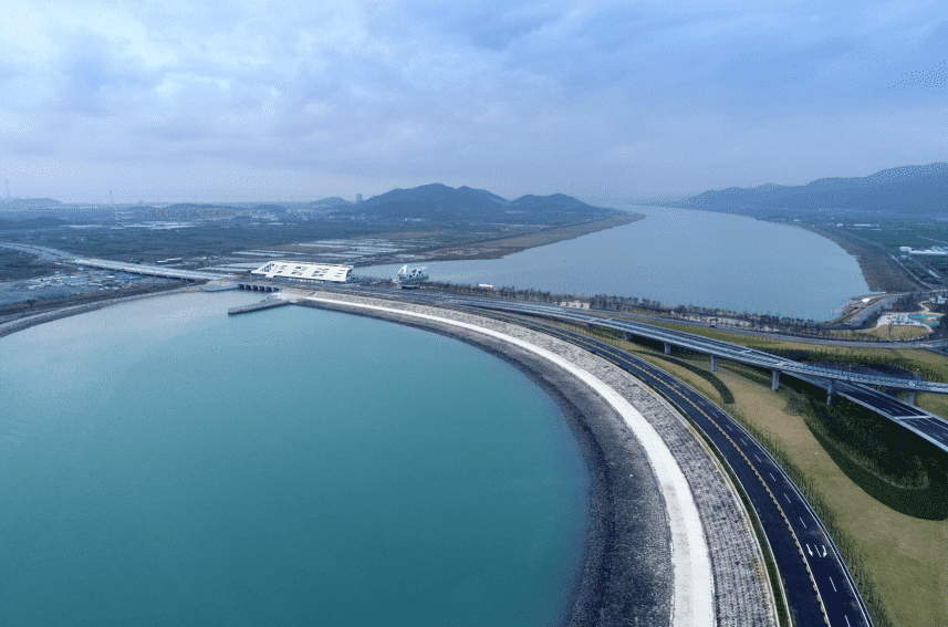 本工程是集防潮防洪、漁業避風、疏港交通、環境治理、濱海旅游等功能于一體的綜合型水利工程,位于梅山水道北端,包括海堤810m、中型水閘一座。